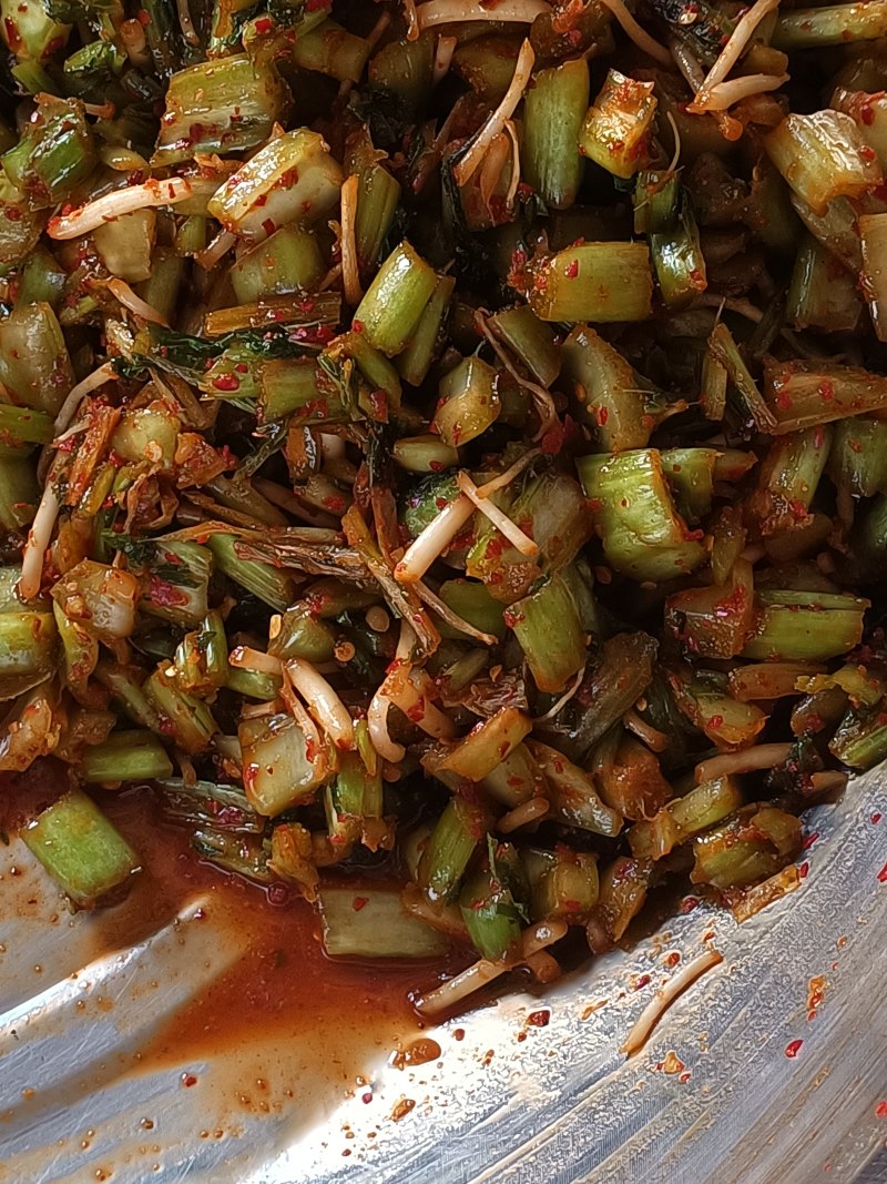 9:将热油泼在榨菜上,吃的时候拌匀。