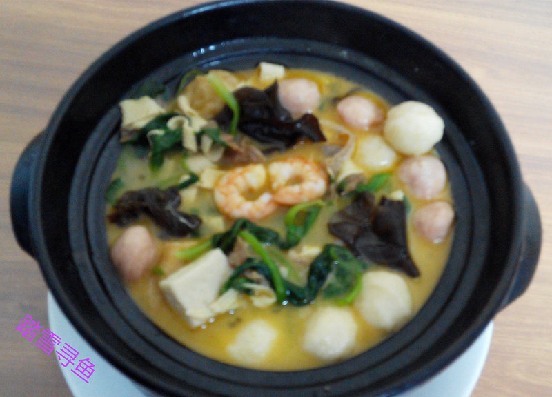10:砂锅的汤开后,先加入豆腐皮,鱼丸这些耐煮的食材