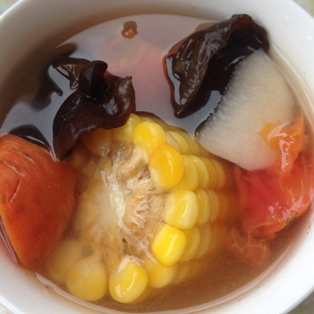 山药1段;胡萝卜1段;柿子1个;木耳10个;玉米5段;