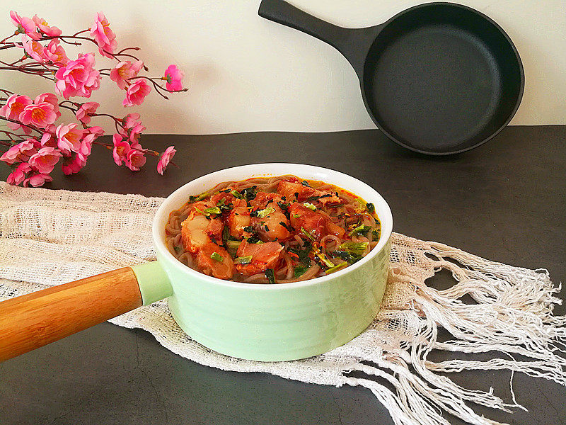 半干面适量(荞麦面);酱香猪软骨50克;酸辣豚骨汤40克;