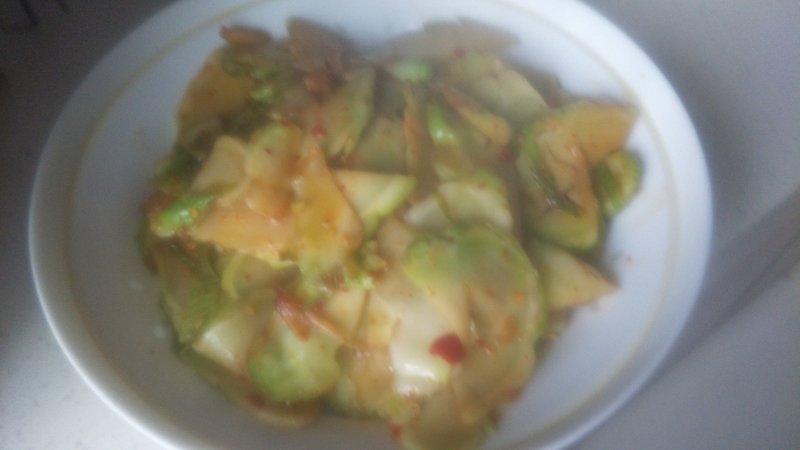 4:大白菜炒至断生后,加入辣椒酱炒匀。