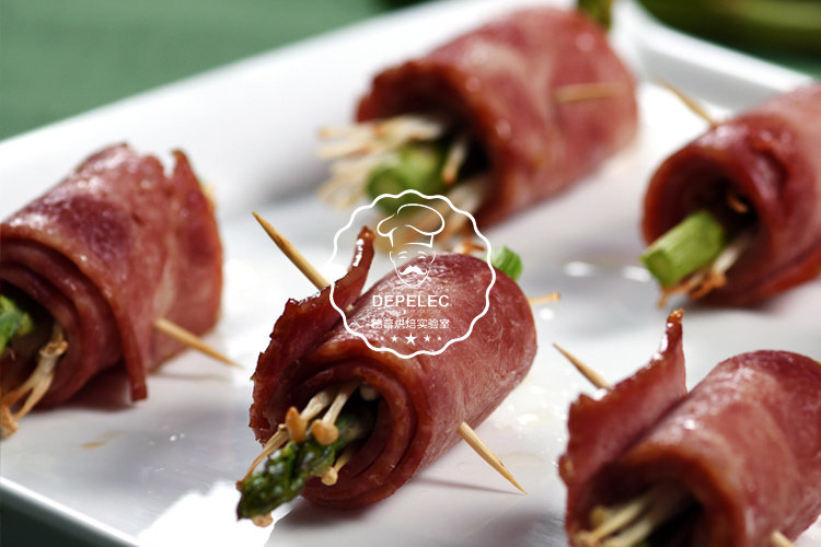 5:煎制过程中,要多翻动培根卷使之受热均匀。