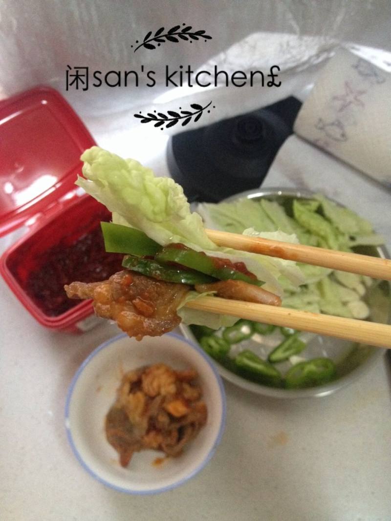 3:油热后,放牛肉和韩国辣酱嫩煎,自己掌握火候。我喜欢吃牛肉的膻味,我就不喜欢腌制。这个辣酱超好吃的说!