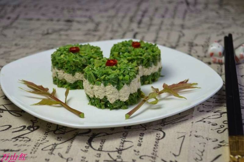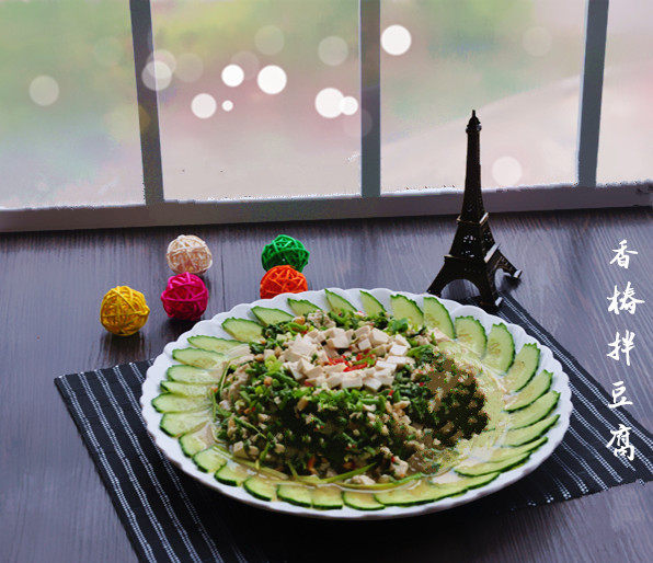 6:把豆腐和香椿用模具成型装盘即可享用