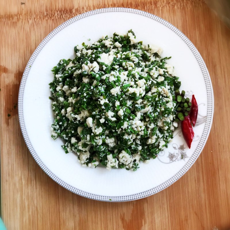 4:豆腐弄碎和香椿末和一起