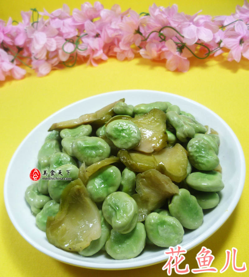 5:烧锅倒油烧热,下入淘洗好的蚕豆翻炒翻炒。