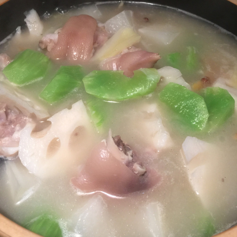 1:前猪蹄3个,切块,洗净,泡除血水。
