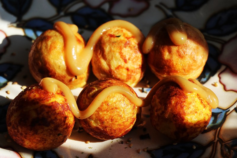 6:直到变圆变成金黄色,加点自己喜欢的酱或者海苔即可食用。