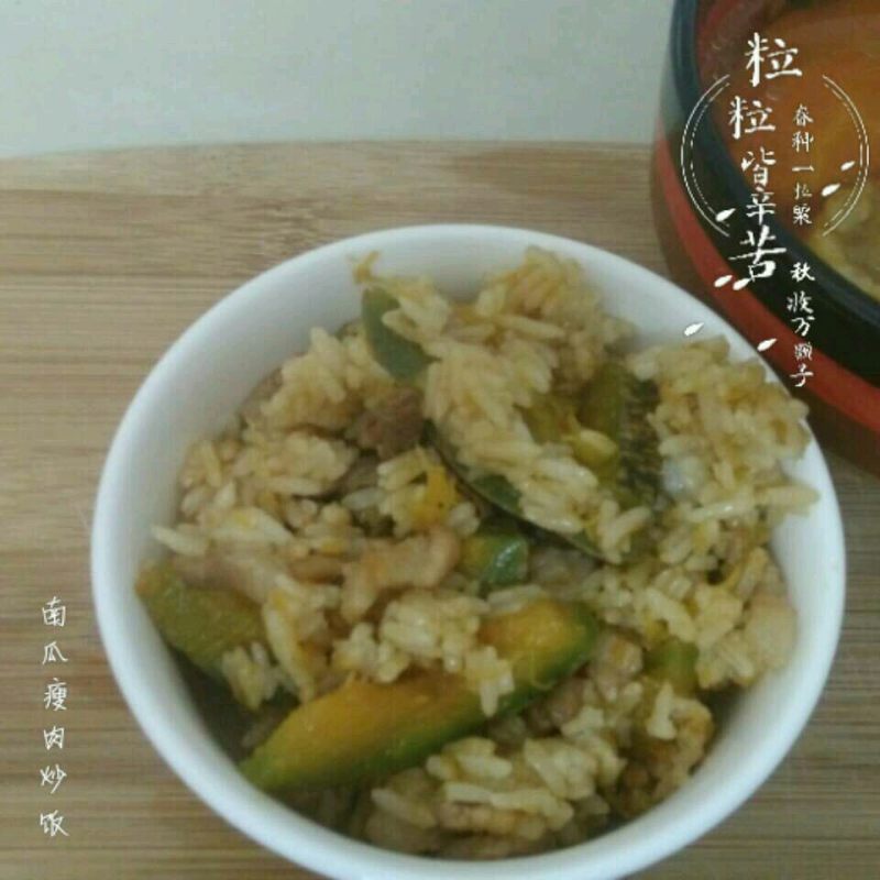 15:放入米饭,与南瓜瘦肉炒散混合一起。(放进少许生抽)