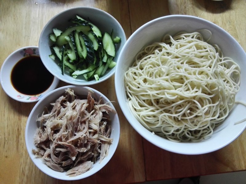 面条最好买市场上的新鲜面条,如没有就买超市中的高劲面这样做出才好吃,煮出的面条一定要用流动的水冲至里外都凉透,这一步不能省。