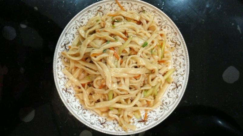 面条沥干水分后就要用麻油拌,要不面条会全部沾在一起