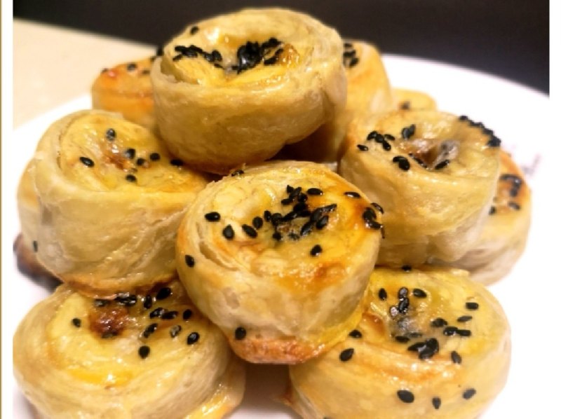 火腿肠2根;肉松适量;蛋黄适量;黑芝麻适量;