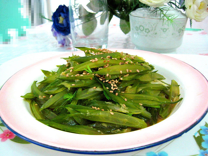 8:将蒜泥、盐、糖、涝汁、香油、味精拌匀入味即可