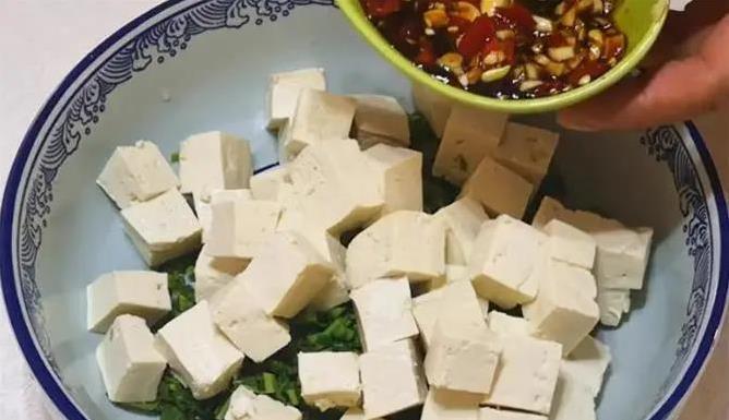 做菜第一步,把豆腐焯水。锅里烧开水,豆腐块轻轻滑进去,烫个一分钟就捞出来。为什么要焯?去掉豆腥味,口感更干净。捞出来放凉,别急着动,沥干水才好拌。