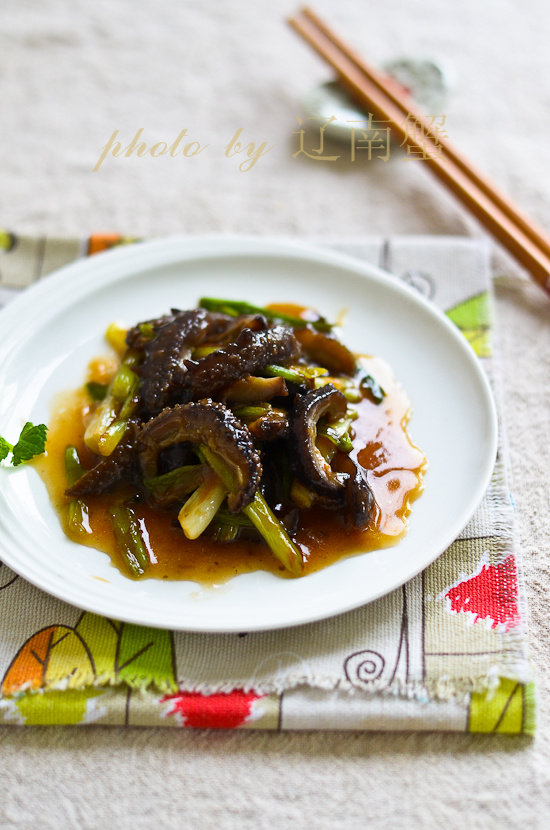 3:之前捞出葱段加高汤上锅蒸10分钟,下切好的冬菇、冬笋和调好的料汁,下入蒸好的葱油,出锅前可以水淀粉沟个薄芡。