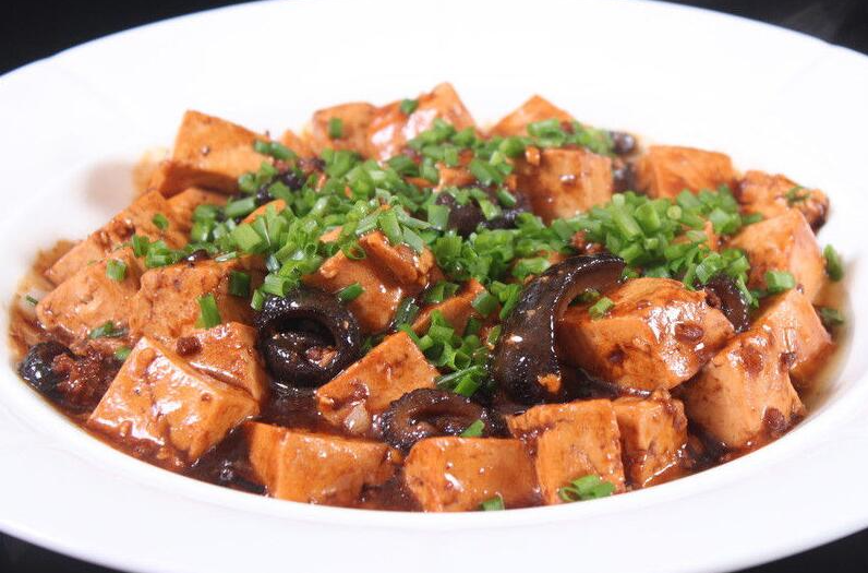 2:锅内油烧至八成热放葱姜爆香,倒入海参翻炒片刻,再加入煎好的豆腐翻炒。