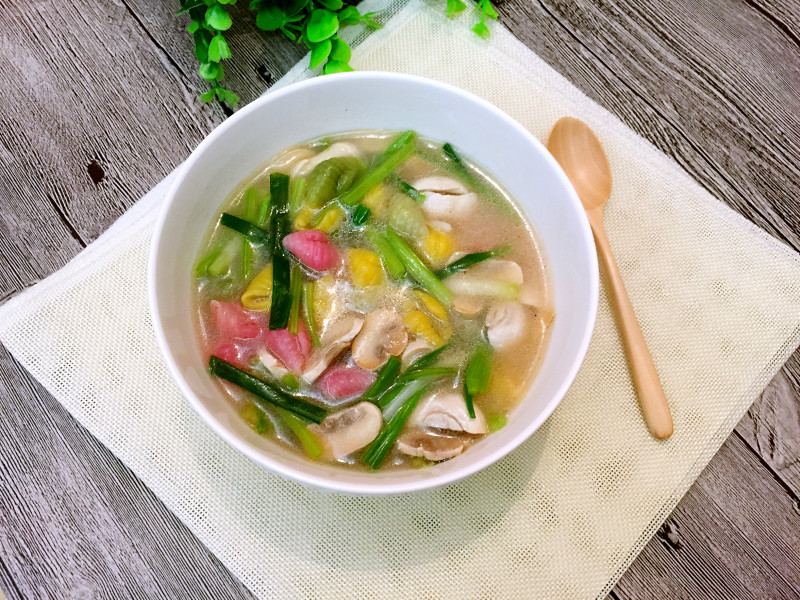 食材有什么放什么,没有规定。蘑菇本身很鲜,只要多放葱和胡椒粉,味道就会很棒。