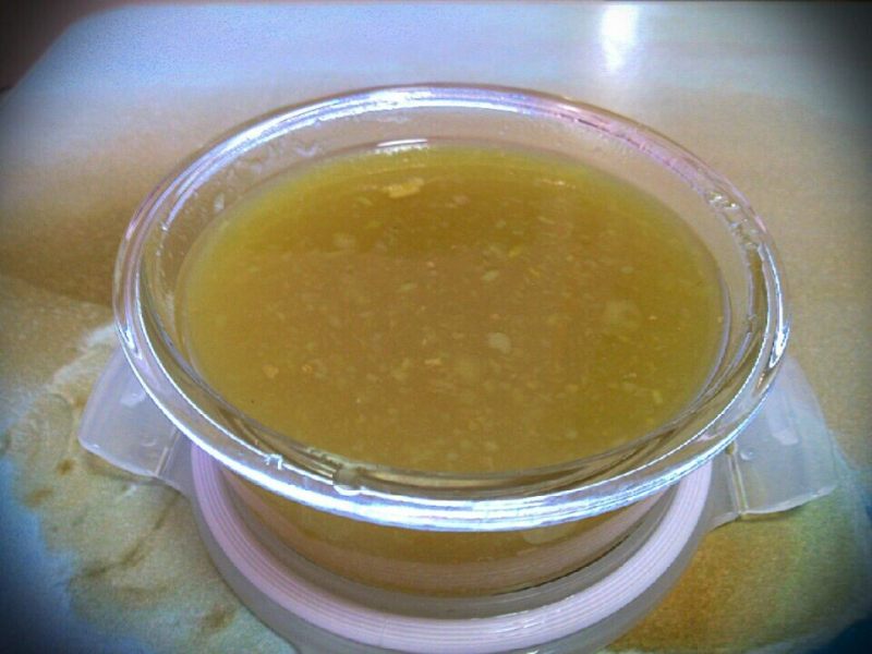 9:熬好以后放凉,加上蜂蜜拌匀,放干净的瓶子里保存,吃时舀上一些柚子茶,加入温开水冲入即可