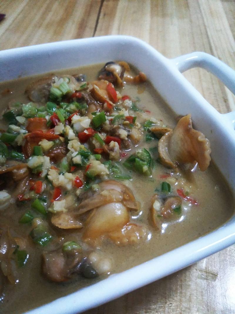 4:再下蛤肉!炒!蛤肉会出水!边炒边出,然后焖!