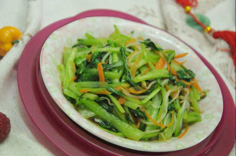 鸡毛菜250克;自发豆芽80克;胡萝卜50克;