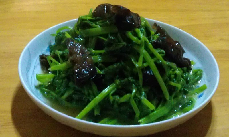 1:豌豆苗摘洗干净沥干水分,木耳发好后清洗干净。