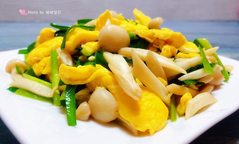 白玉菇80g;韭菜50g;鸡蛋4个;