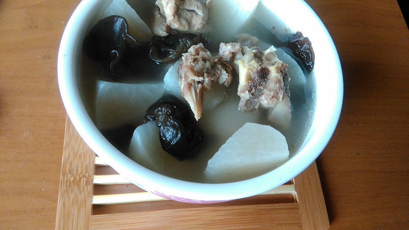 6:盖锅盖,大火烧开,小火煲汤,排骨五成熟