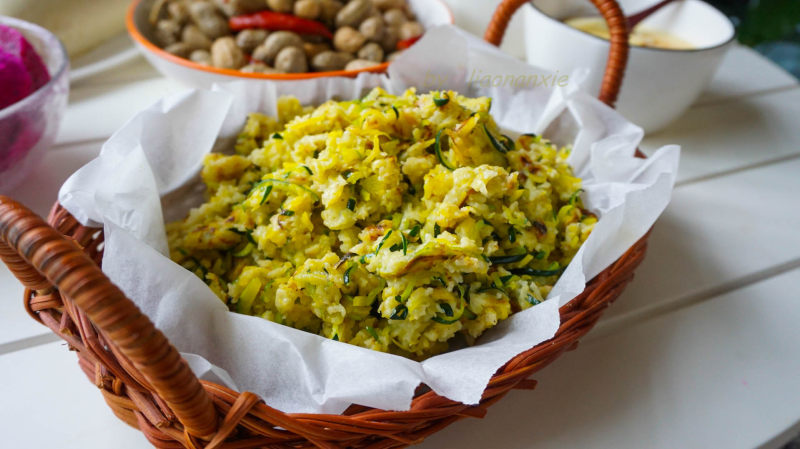 2:南瓜去掉瓜瓤子,用刨丝器刨成南瓜丝。