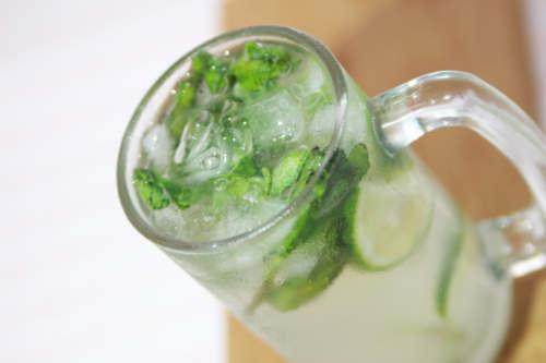 7:挤3个柠檬角,放几片拍醒的薄荷。