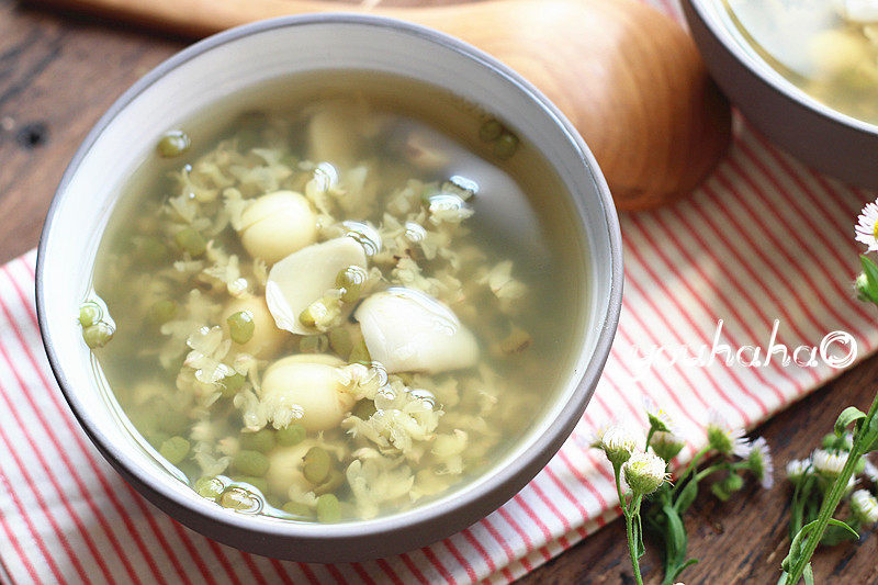 绿豆适量;银耳适量;百合适量;莲子适量;桂圆肉适量;