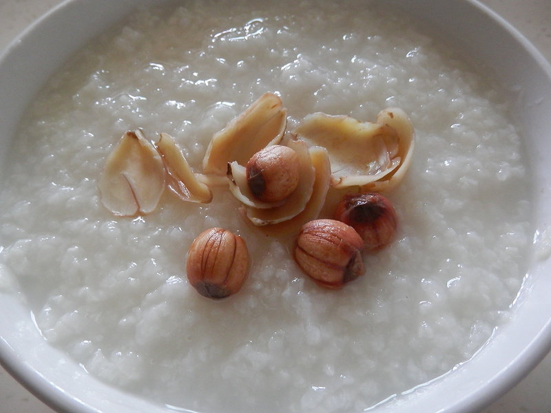 2:锅中加入适量清水,煮开后先下莲子煮二十分钟,然后把大米和百合下入锅中,煮开后改小火再煮半个小时。