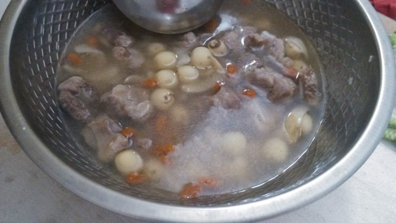 百合10克;莲子30克;排骨1根;枸杞1小吧;姜一片;