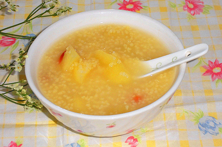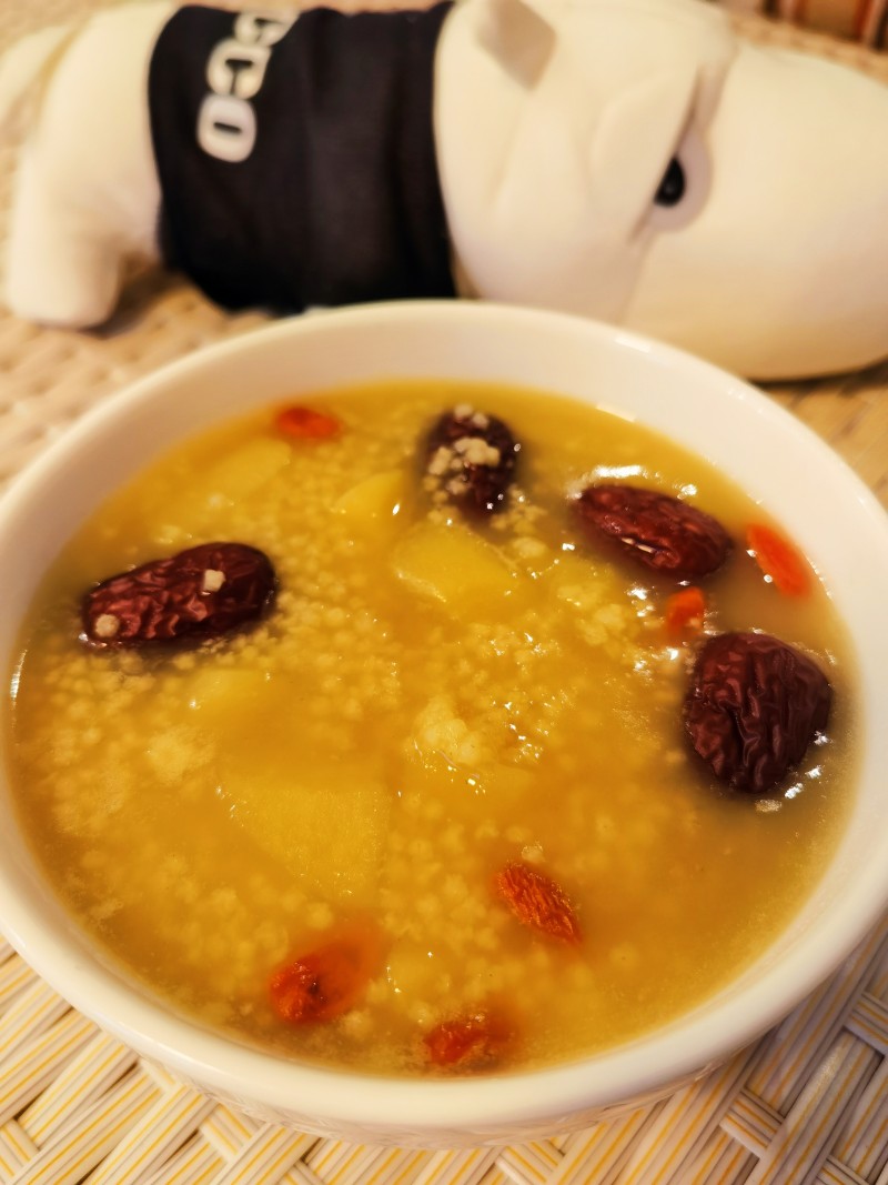 小米50g;水500g;苹果半个;枸杞适量;葡萄干适量;