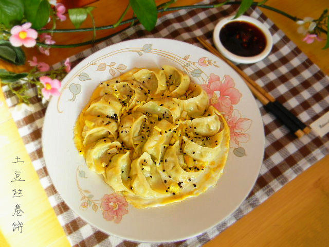 4:从右往左慢慢的卷起来,最后用水或者饺子馅儿沾起来,就不会散啦。