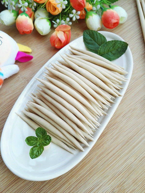 4:用竹制工具将莜面制作成小鱼形,也可以手制成小鱼形备用