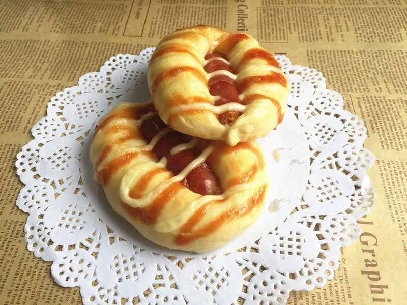 绵白糖20克;盐3克;蛋液25克;牛奶120克;黄油20克;台湾烤肠10支;沙拉酱少许;番茄酱少许;