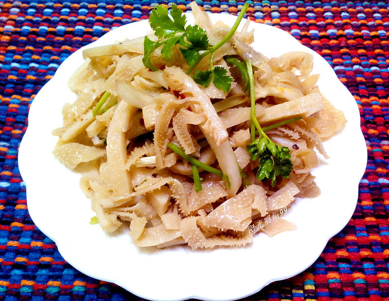 3:熟牛百叶切成长条。