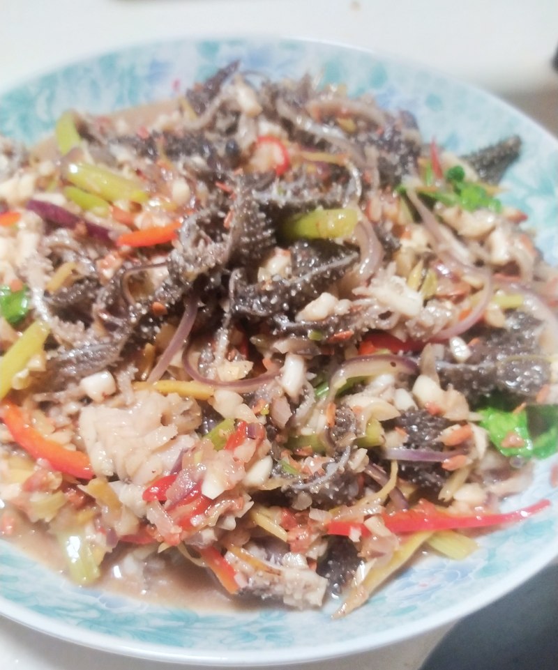 4:香菜洋葱倒入牛肚丝里。