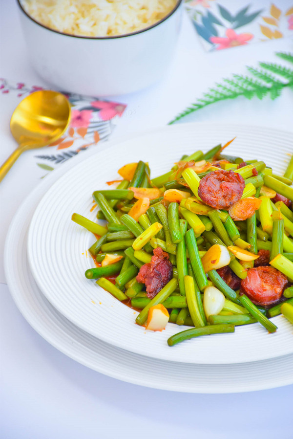 麻辣腊肠炒蒜苔