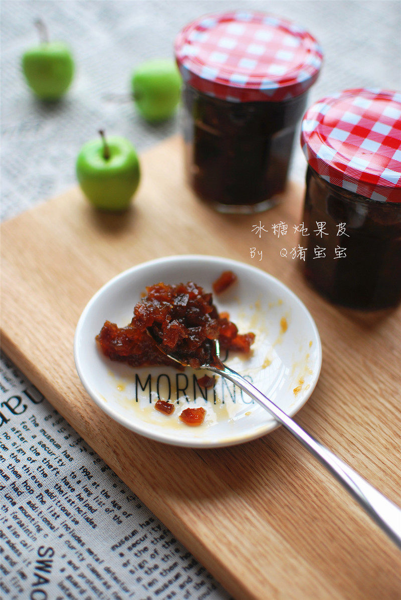 8:将炖好的果皮装入玻璃瓶里,立即倒扣,30分钟,冷却后放冰箱冷藏保存。吃的时候蒸热吃或泡水喝都行。