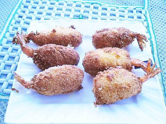 1:主要食材:虾、芝士奶酪、鸡蛋、面包糠、淀粉