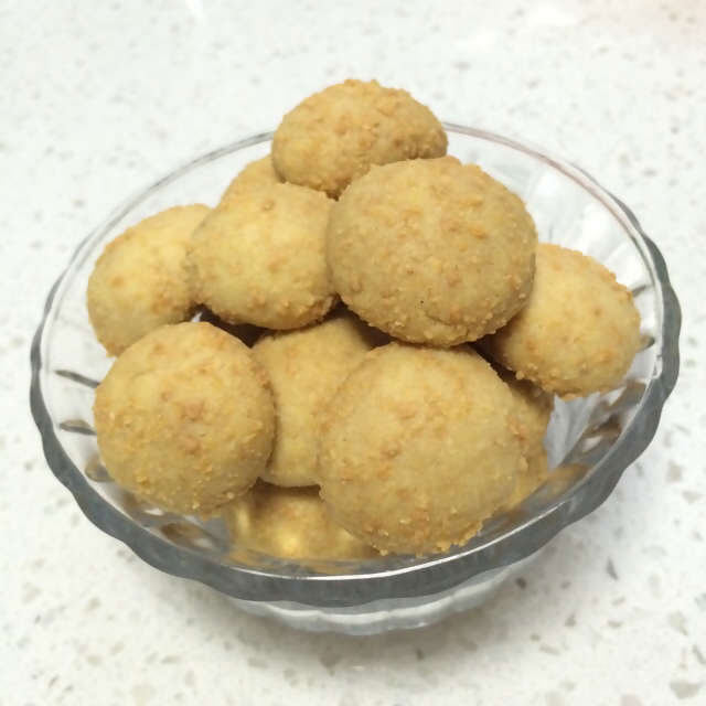 1.打发之前先将黄油和糖粉手动搅匀,可以避免糖粉飞扬的情况;2.此饼干面团相对较干,不像其他饼干那样容易成团,所以需要用手抓捏的方式来操作捏成条状;3.由于此次采用了球状造型,内部中心不易成熟,可以在烤完之后在烤箱中焖10分钟,然后再取出;4.最后,老生常谈,烤箱的温度和时间设定只是一个参考,最好先了解自家烤箱情况再做调整比较好