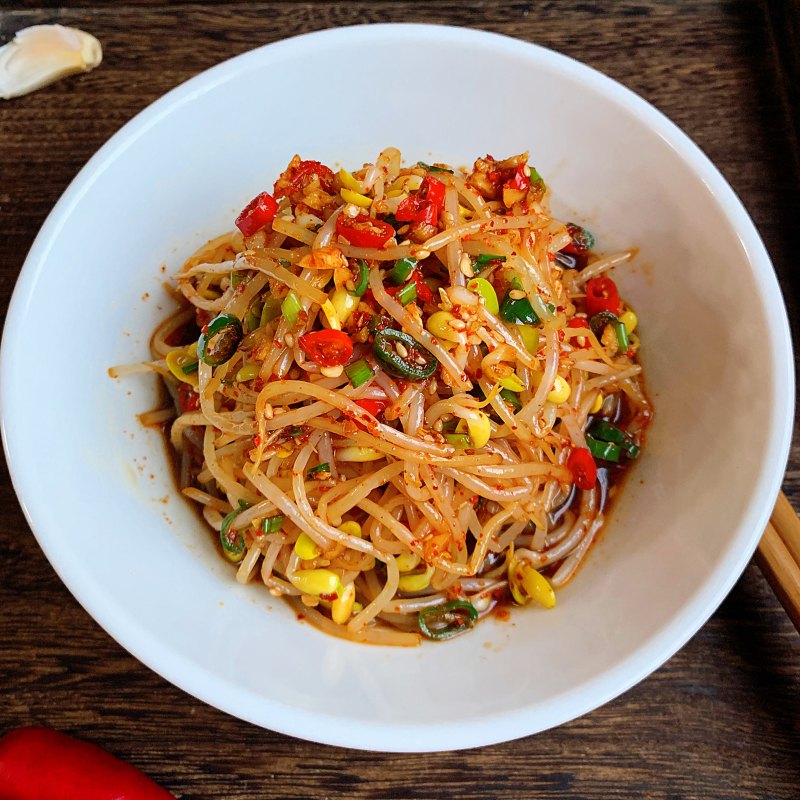 豆芽我就烫了大概20秒,喜欢脆脆的口感。调料部分,我这个有点辣嘘嘘,小伙伴们依自己喜好来吧!