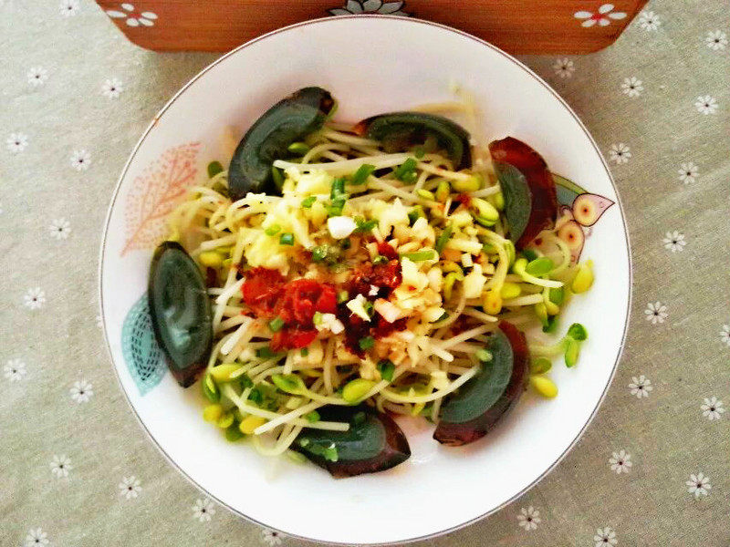 2:豆芽洗净,水开,加少许盐,烫一下。