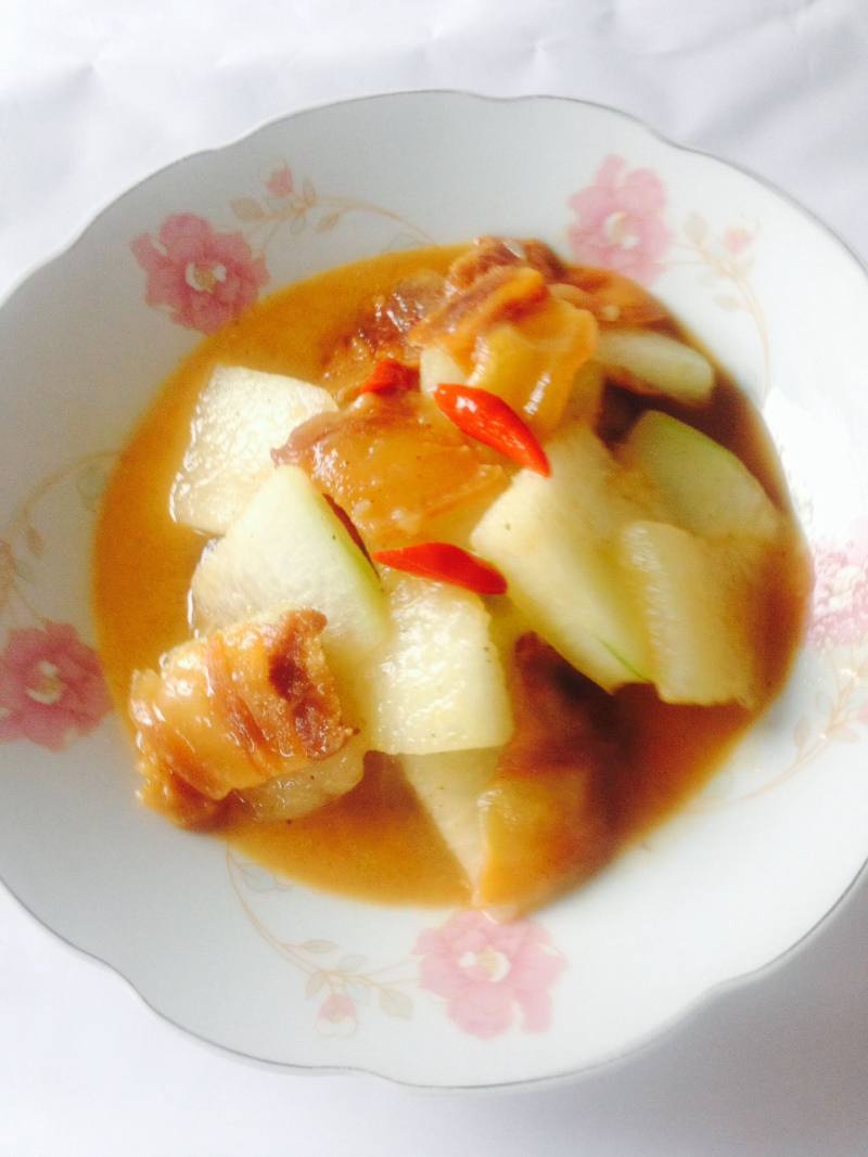3:加入冬瓜翻炒,加入半勺糖,一勺生抽,盐,加少许水