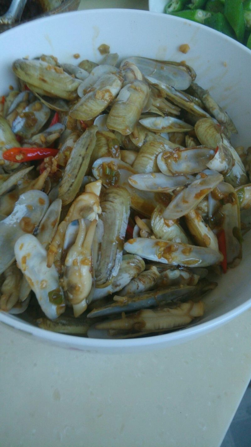 6:鲜活的蛏子蒸熟后全部自动打开,如果遇到没有打开的,请挑出去扔到,没有打开就证明这个蛏子是死的哦