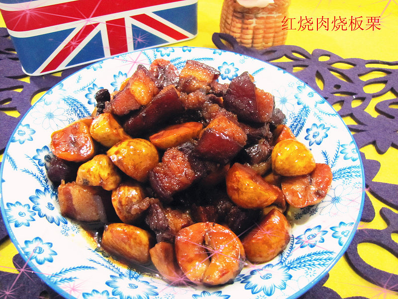 五花肉500克;板栗200克;姜少许;白糖少许;
