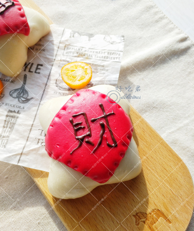 18:最后用融化的黑巧克力在福包表面写“福”、“财”字就可以啦~