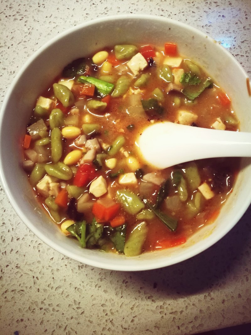 1:麻食的食材没有严格要求,菜越多越好吃,菜的品种不固定,家里有什么用什么,喜欢什么用什么,要注意的是每种菜要控制量,不能多。但是!西红柿必须有。西红柿切块,黄豆提前泡发,煮熟,嫌麻烦可以不放。