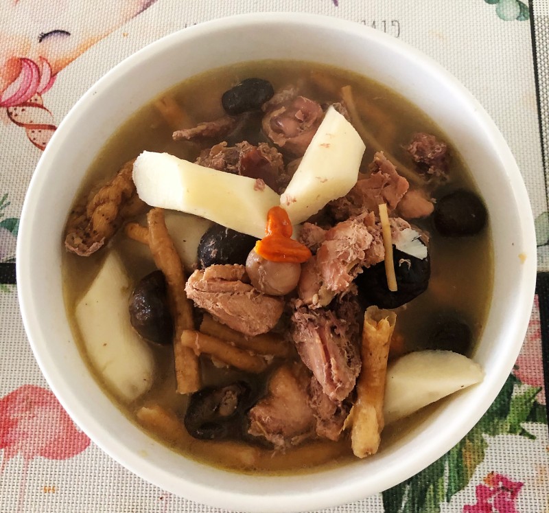 6:排骨小火炖1小时后,下山药继续炖20分钟,放大枣2颗,枸杞适量